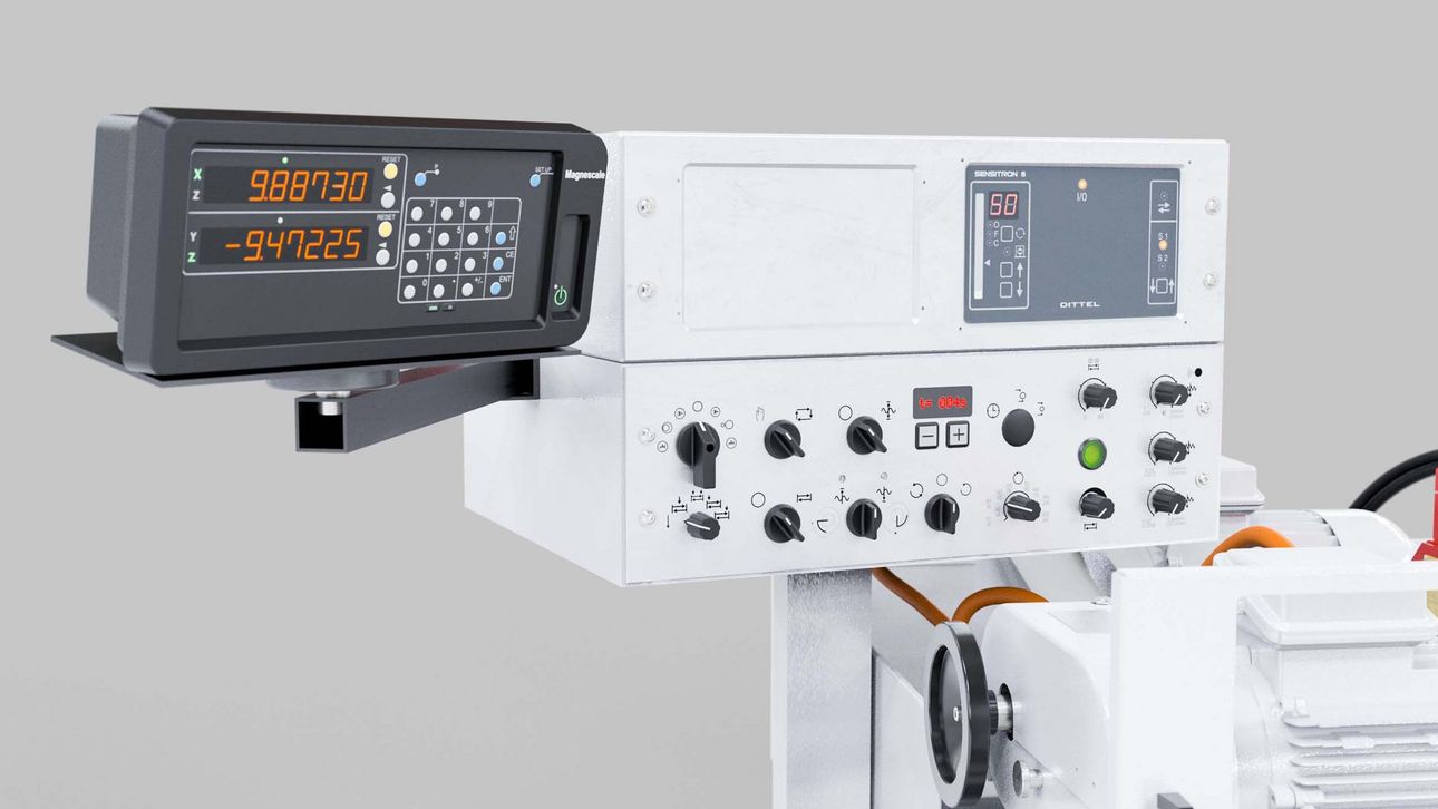 • Control cabinet connected to the machine. Can be expanded to include in-process gauging and Sensitron