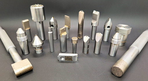 CVD (Chemical Vapour Deposit) log Blade type dressing tool. This dressing tool has a single larger CVD log set on centre of a Blade and has either a 0.125mm or 0.250mm lapped radius. We stock standard tools mounted on a short MT1 shank to fit straight into the standard Studer dressing tool holders